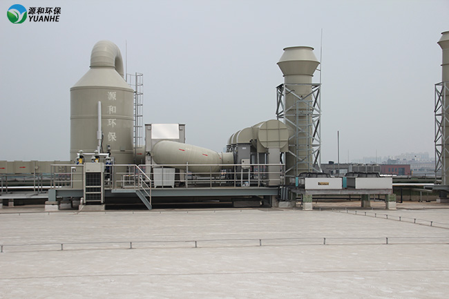 酸霧洗滌塔是利用氣體與液體間的接觸,將氣體中的污染物傳送到液體中,然后再將清潔氣體與被污染的液體分離,達到清凈空氣的目的。廢氣經由填充式酸霧洗滌塔,采用氣液逆向吸收方式處理,即液體自塔頂向下以霧狀噴撒而下,廢氣則由塔體(逆向流)達到氣液接觸之目的。此處理方可冷卻廢氣、調理氣體及去除顆粒,再經過除霧段處理后,排入大氣中。